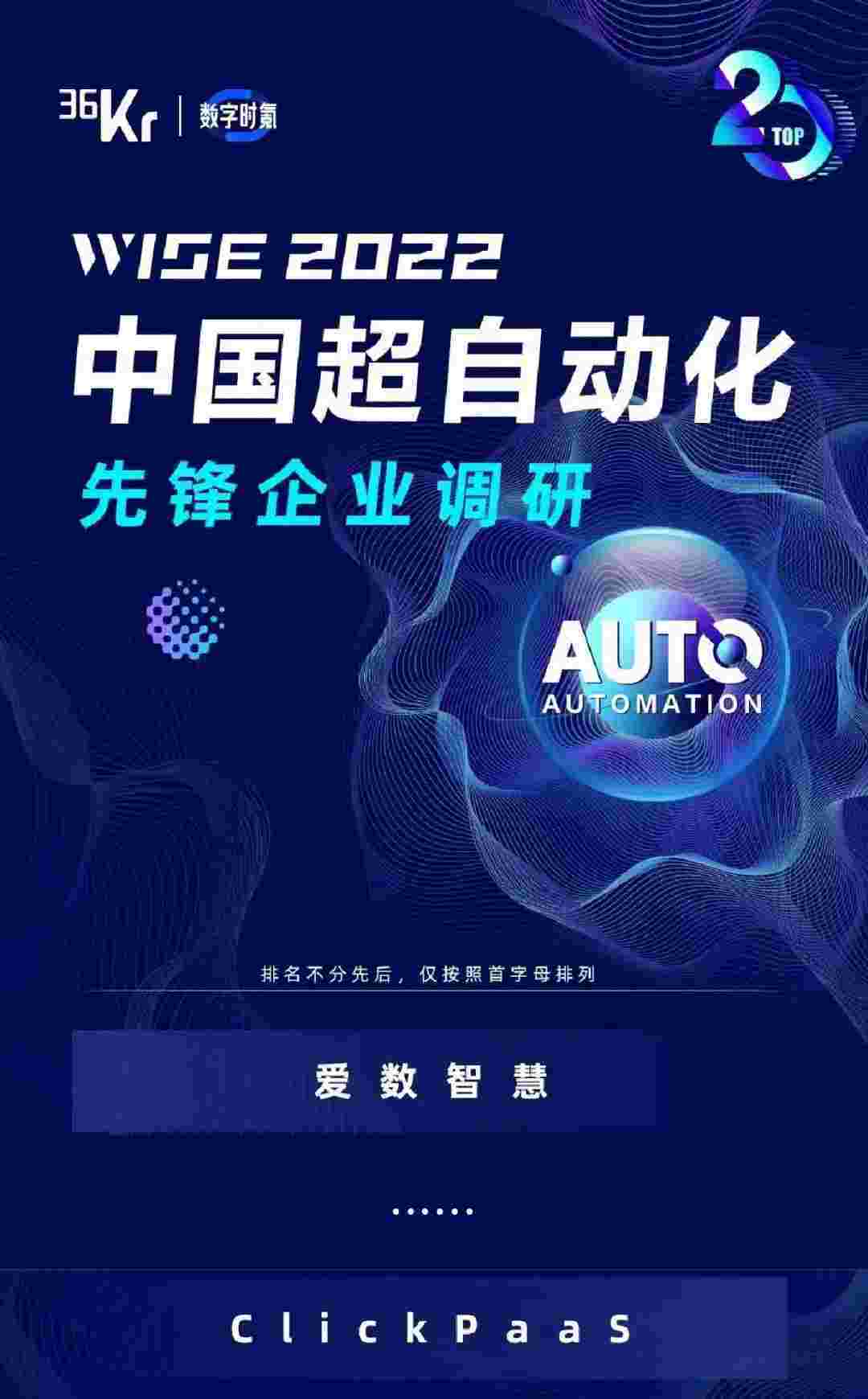 8月10日,,,由36Kr主办的WISE 2022中国超自动化峰会在杭州成功举办。。沃钱包作为国内低代码PaaS平台的领军企业,,,,凭借过硬的技术实力和优质的产品能力,,,在本次峰会中实力入选「2022年中国超自动化先锋企业」20强。。。。